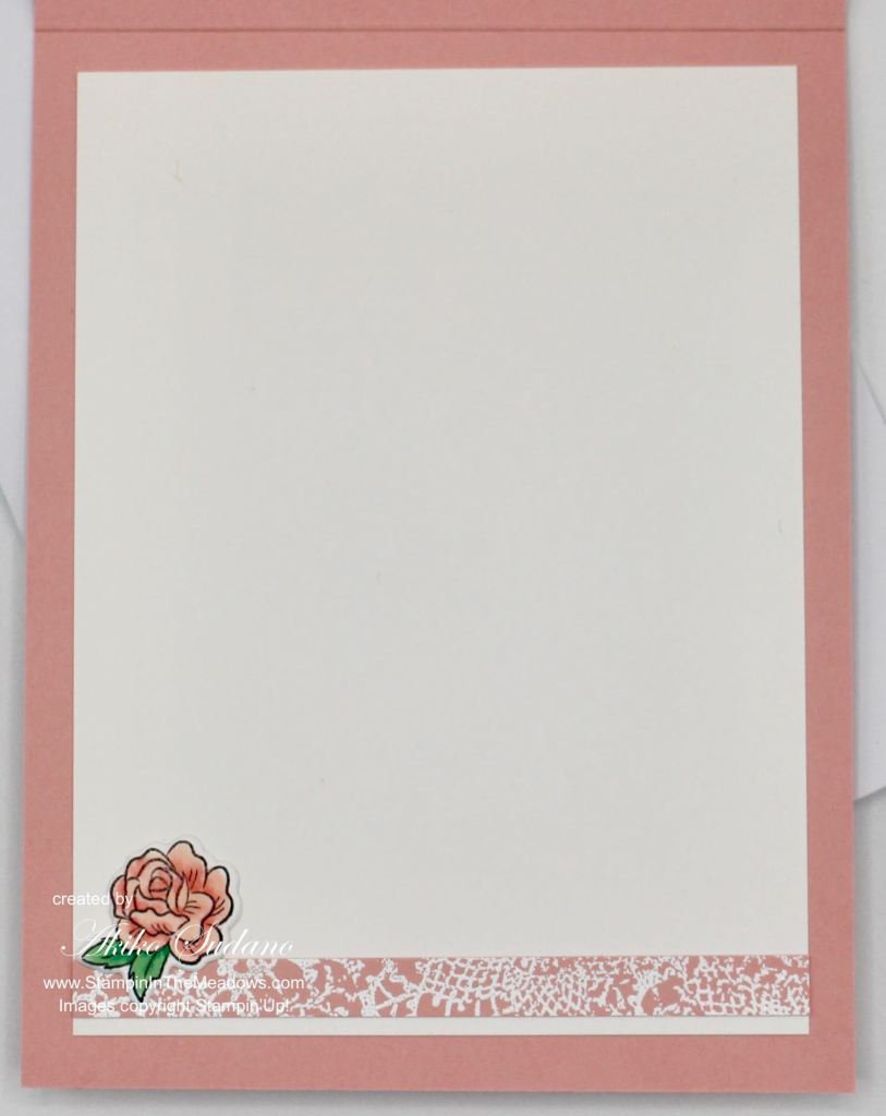 See how I used the leftover from my lace doily background on the inside. I also added one of the single rose die cuts.