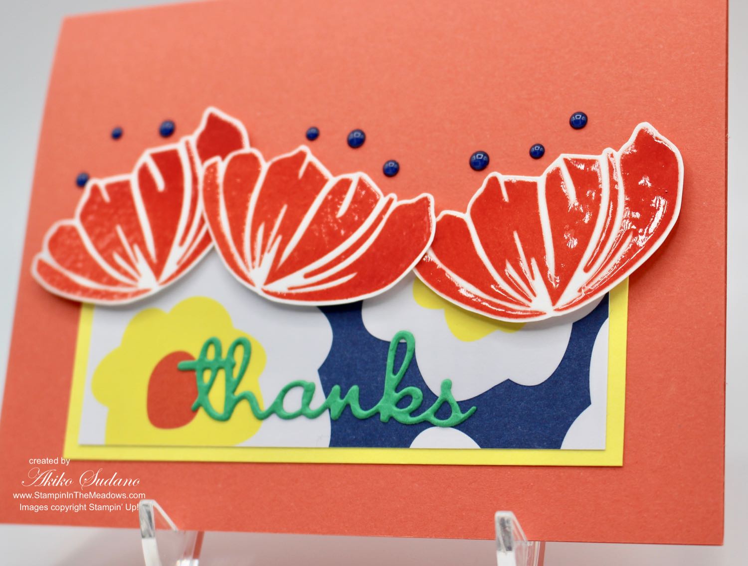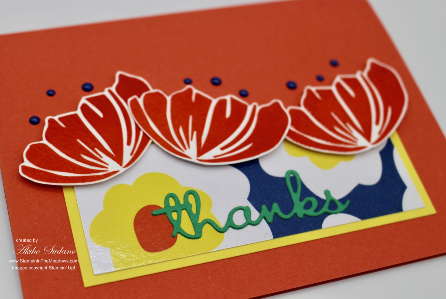 I hope you liked this cheerful, fun thank you card! I really enjoyed thinking of the 70’s – flower power, bell bottomed jeans and tie died shirts – while making it.