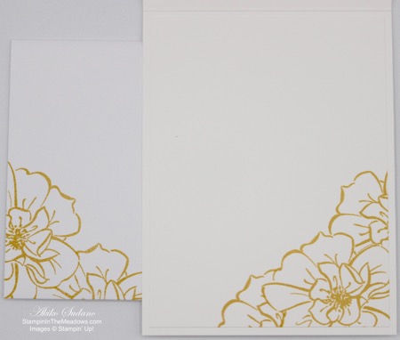I decorated the inside of the card by stamping the outline rose image in So Saffron ink and did the same with the envelope.