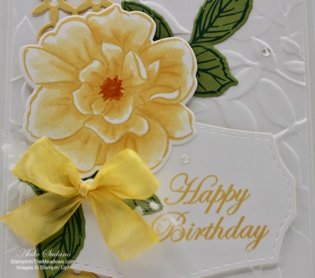 This rose stamps beautifully when you use the other two stamps to layer the color on, so I was pleased at how pretty the flower came out with using just the outline stamp and coloring with Stampin’ Blends. Plus I love yellow roses, don’t you? Thanks for visiting!