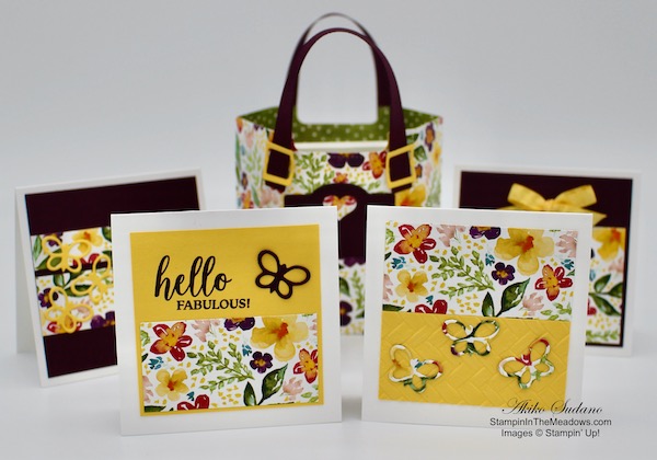 These are the note cards I made for the sample tote. For these I used Blackberry Bliss and Daffodil Delight card stock. The sentiment is from the Dressed to Impress stamp set.
