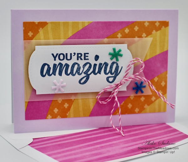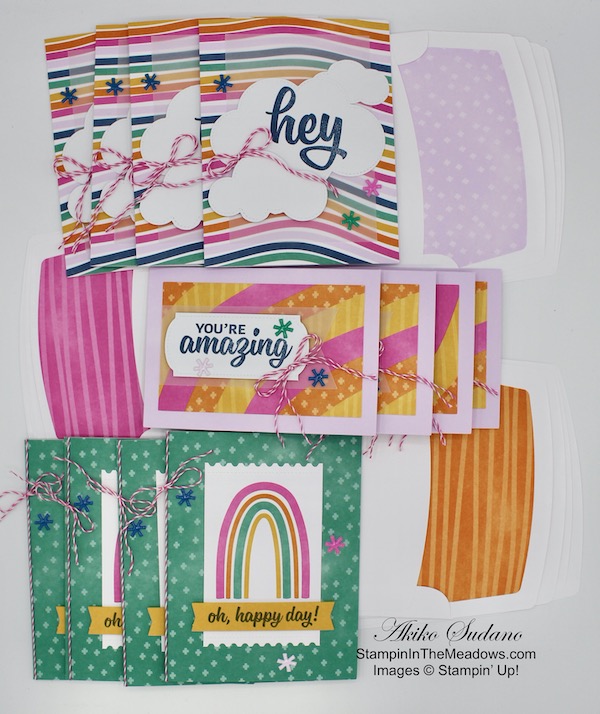 The kit makes 12 cards of 3 designs – two full size cards and 1 note card. And they are so colorful and happy! Here’s the note card: