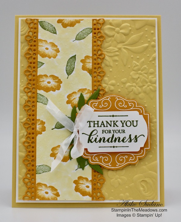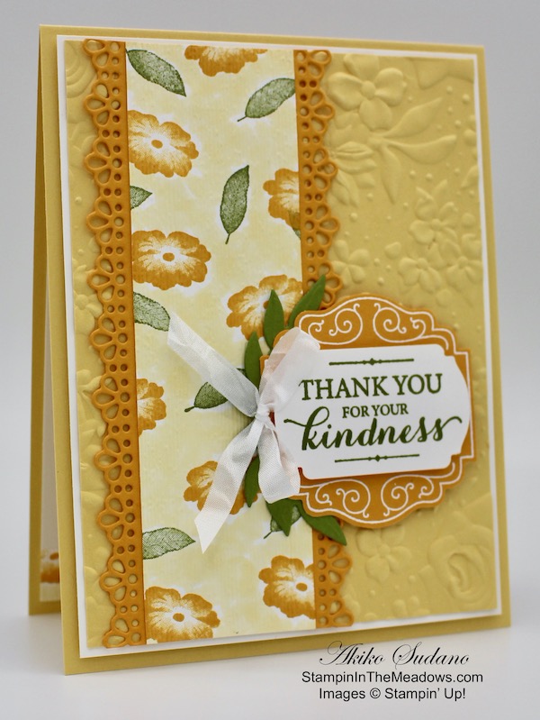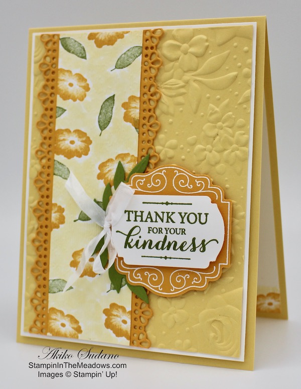 Sadly, the Stampin’ Up! Layered with Kindness stamp set is retiring along with the beautiful Country Floral embossing folder. Both of these items are still available as Last Chance products until they sell out or through June 2, so check them out in my Online Store.