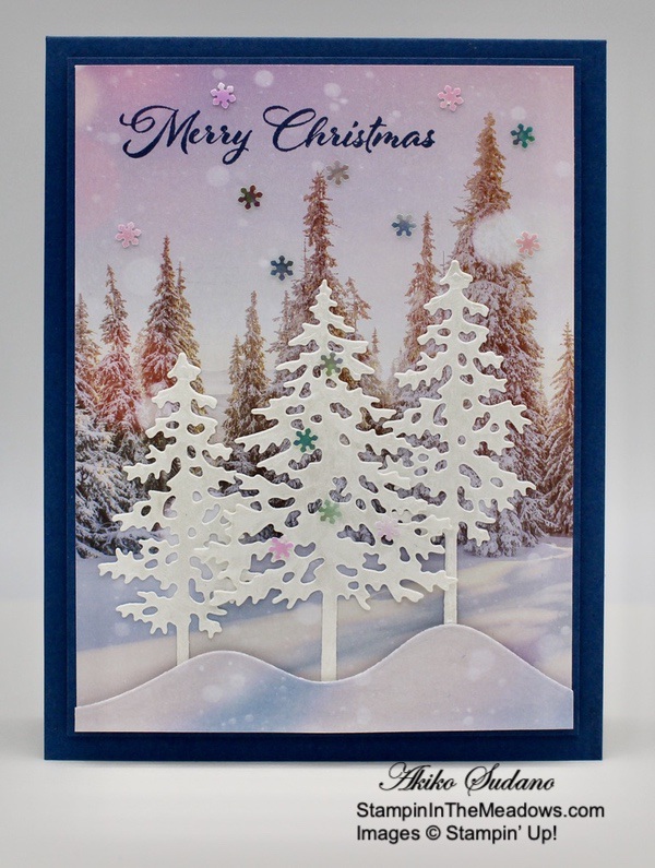 Wow, Akko! How creative to take that beautiful Feels like Frost paper and make it into a winter wonderland with the trees and snow drift! It’s just perfect! TFS