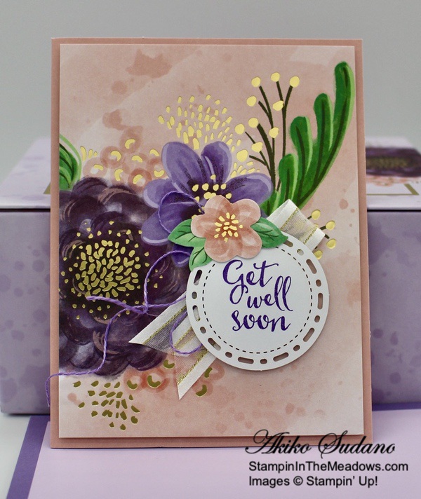 There are extra die cut flowers and labels to further customize your card or accent the inside. The Envelopes are a pretty Highland Heather with Gorgeous Grape borders.