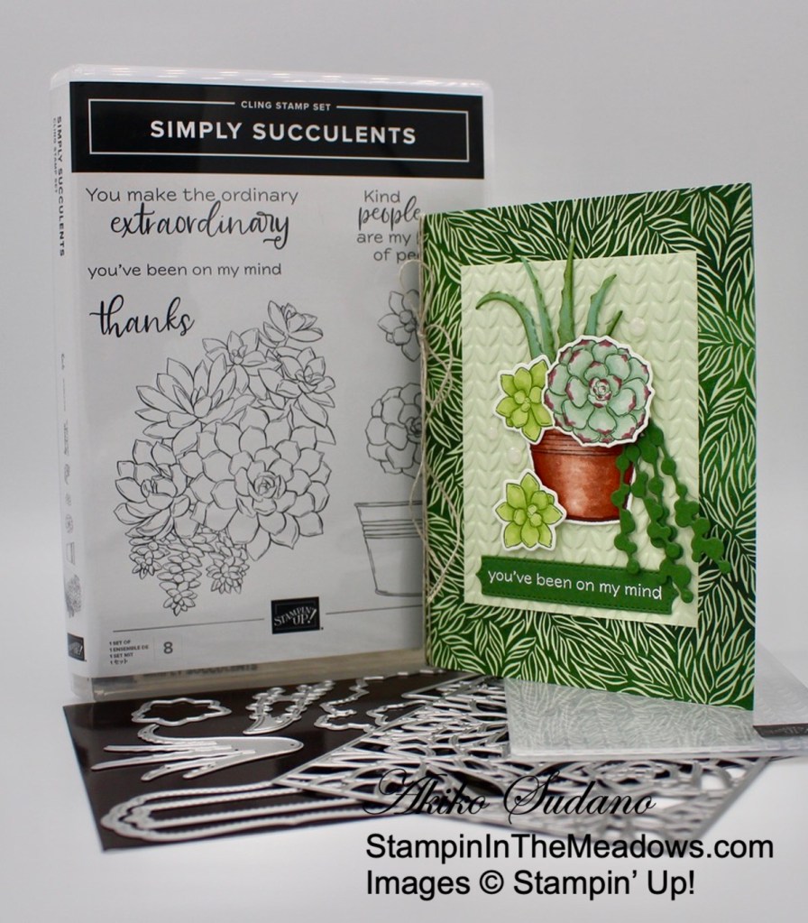 Good Morning! The Stampin’ Up! Simply Succulents bundle is new in the Jan-Jun 2021 Mini Catalog that comes out tomorrow! And it’s a great bundle! I made a simple thinking of you card with the bundle, but it’s very versatile and there’s so much more that you can do with it that I’ll be writing about in the future. You can find the currently available supplies I used at the bottom of my post along with the sizes of cardstock used.