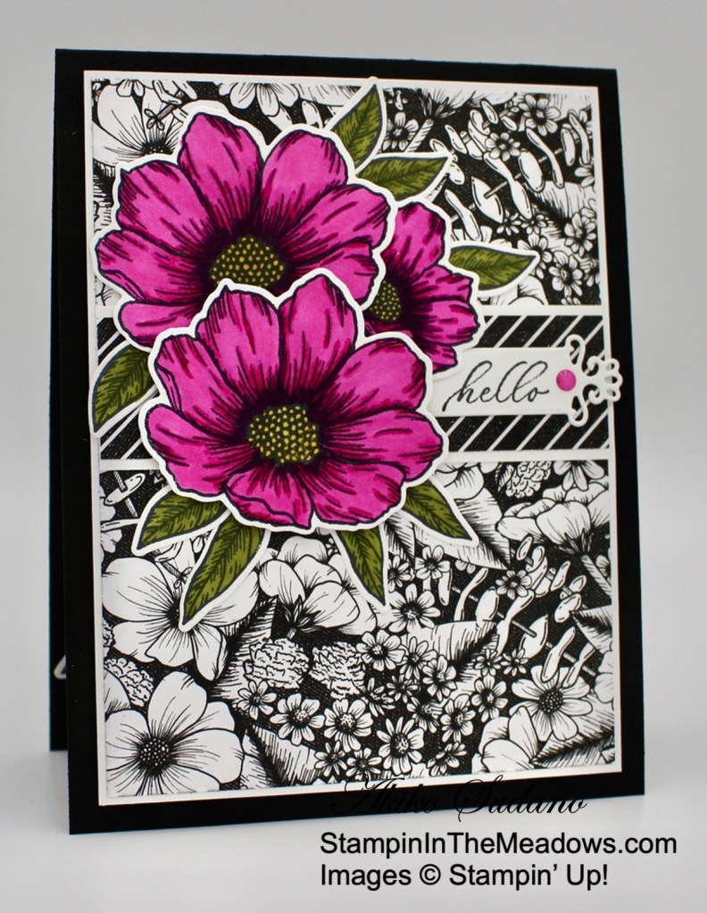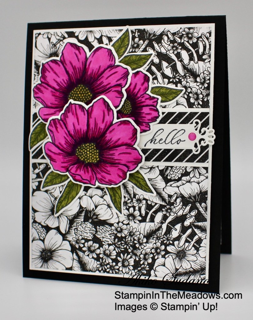 Stunning card, Akiko! Love that big bold flower popped on the black and white! 🙂