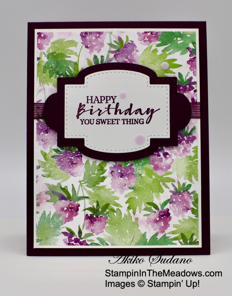 - Blackberry Bliss – 4-1/4″ x 11″ card base scored at 5-1/2″, 2-3/4″ x 4″ (die cut label)
