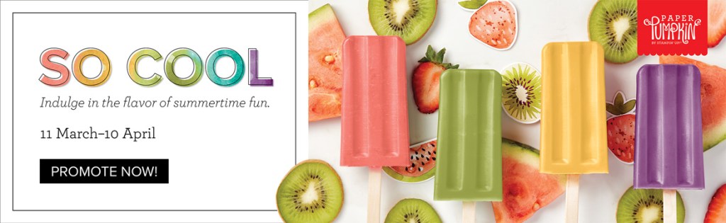 The So Cool Paper Pumpkin Kit is a little taste of summer fun, with enough supplies to make 12 colorful, shaped cards with coordinating envelopes. Six card bases are popsicle shaped, the other six are semicircles: three watermelons and three rainbows. All of the cards are splashed with cheerful, vivid watercolor images. The kit also includes two full-size, matching sticker sheets, die-cut accents, fun embellishments, and more. But, even more cool: it’s the first Paper Pumpkin kit designed with kids in mind!
