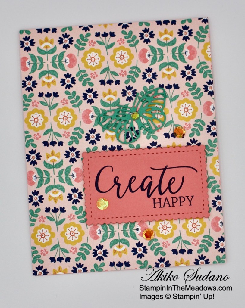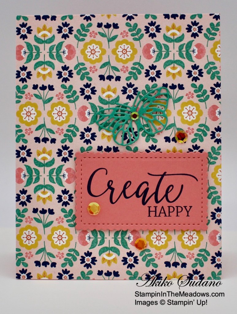 Good Morning! I hope you’re getting ready for a fabulous holiday weekend! And if you’re planning to spend some time crafting, today’s card is for you. I used the wonderful Stampin’ Up! Create with Friends photopolymer stamp set with the pretty Sweet Symmetry designer series paper to make a simple note card celebrating creativity. You can find the supplies I used at the bottom of my post along with the sizes of cardstock used.