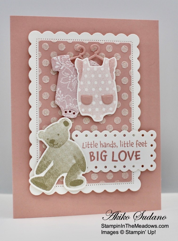 That is so sweet Akiko! Love the touch of sparkle on the background, perfect with the little pink onsies. 🙂