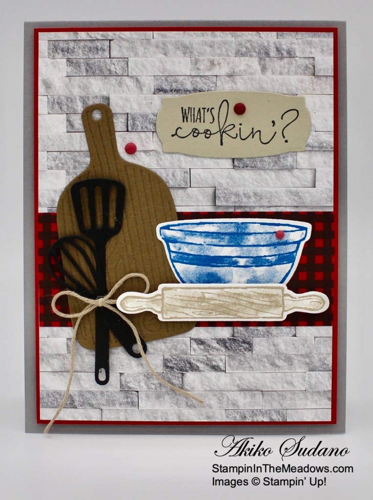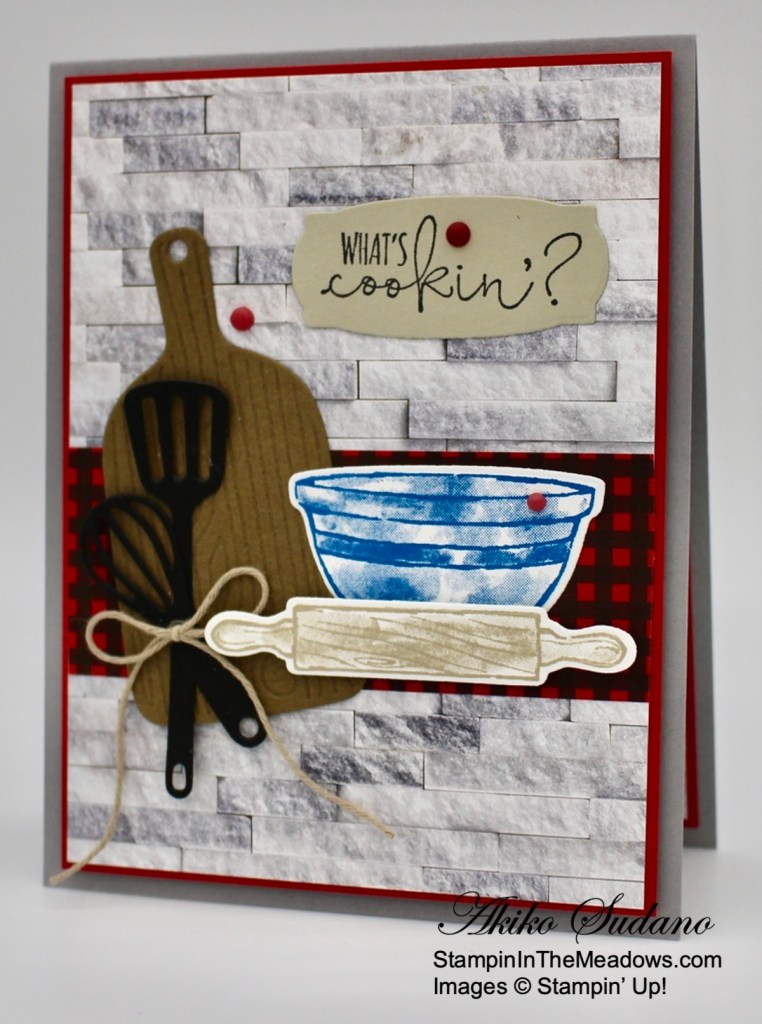 The Stampin’ Up What’s Cookin’ bundle is so wonderful and versatile! There are so many other food stamp sets that these items can be used with such as cupcakes and cookies. The bundle is perfect for cards for any kind of chef or food lover for any occasion.