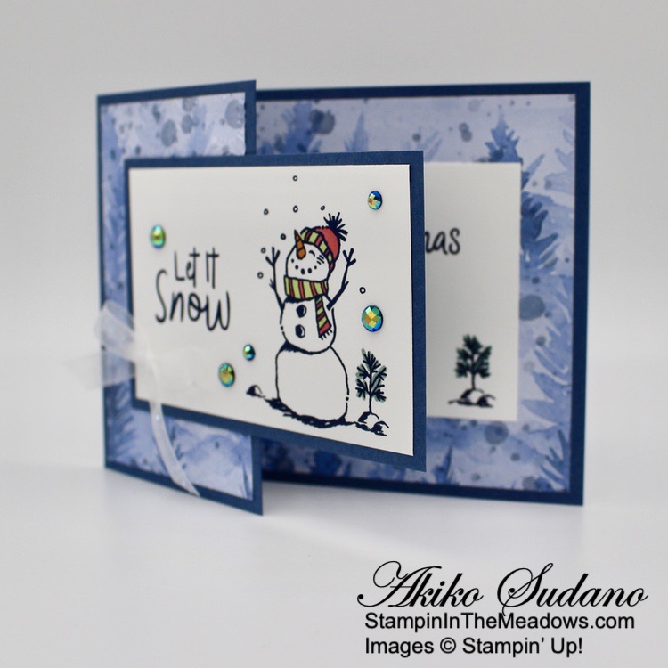 Good Morning! The Stampin’ Up! Snowman Season photopolymer stamp set is one of the cutest snowman sets out there! The simple graphics and happy images are perfect for expressing the joy of the Christmas and Winter seasons. I mixed it up by using a very simple fun fold, which exposes the inside of the card. You can find the currently available supplies I used at the bottom of my post along with the sizes of cardstock used.
