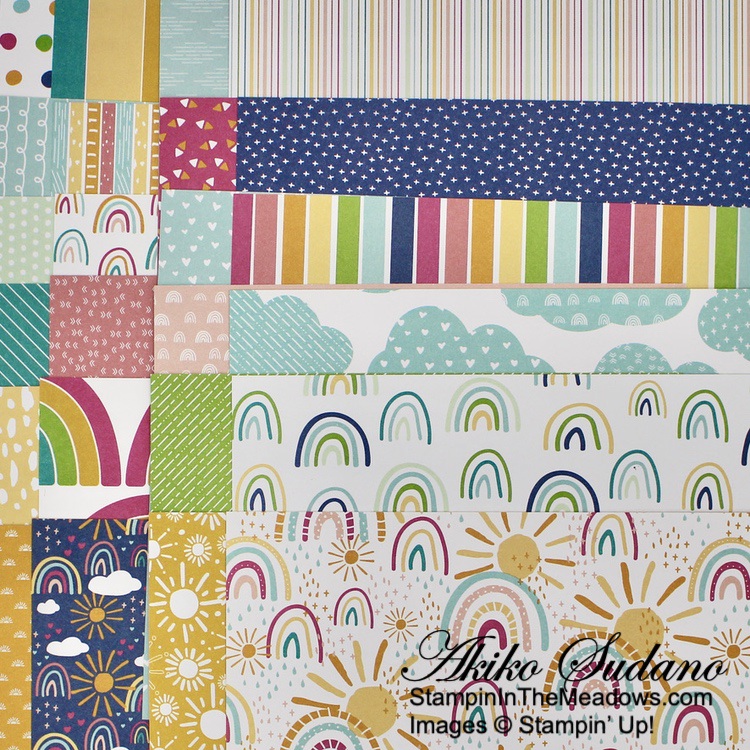 And here’s a picture of the pretty Sunshine and Rainbows 6″ x 6″ designer series paper that is Free with a $50 order (before shipping and taxes) during Sale-A-Bration: