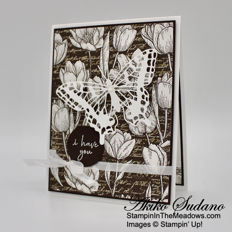 Good Morning! The new Abigail Rose designer series paper has so many pretty images and for today, I paired the tulip print with a gorgeous die cut butterfly and the fun Stampin’ Up! Happy and Heartfelt sentiment cling stamp set for a simple encouragement card. You can find the supplies I used at the bottom of my post along with the sizes of cardstock used.