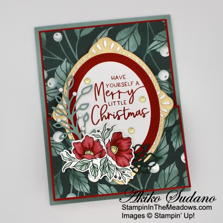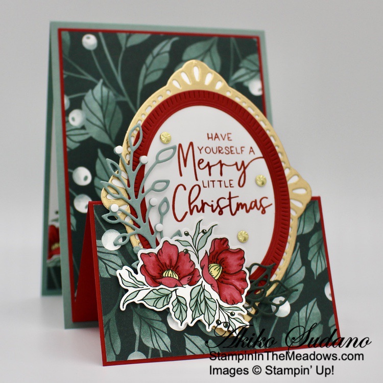 Good Morning! The Stampin’ Up! Framed Florets bundle will be available tomorrow when the Fitting Florets Promotion begins. The bundle is an early release from the upcoming January – June 2023 Mini Catalog and the promotion will also include products that are available for a limited time, including the pretty Fitting Florets designer series paper and the Framed and Festive cling stamp set. And this is all perfect for making Christmas cards. I used both of these products with the beautiful oval frames from the new bundle for a Double Easel fun fold Christmas card. You can find the supplies I used at the bottom of my post along with the sizes of cardstock used.
