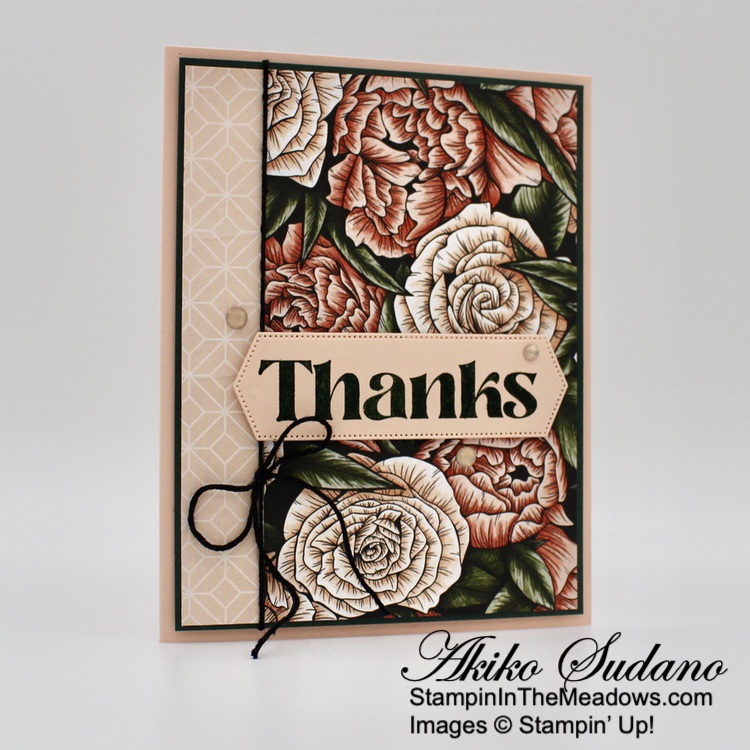 I love this bold sentiment and label die from the Stampin’ Up! Fragrant Flowers bundle, and it goes wonderfully with the bold floral and graphic designs in the Sale-A-Bration Favored Flowers designer series paper. The DSP pack is one of the items that you will be able to get for free with a purchase of $50 during Sale-A-Bration. Here are the pretty papers in the pack along with the Fragrant Flowers bundle: