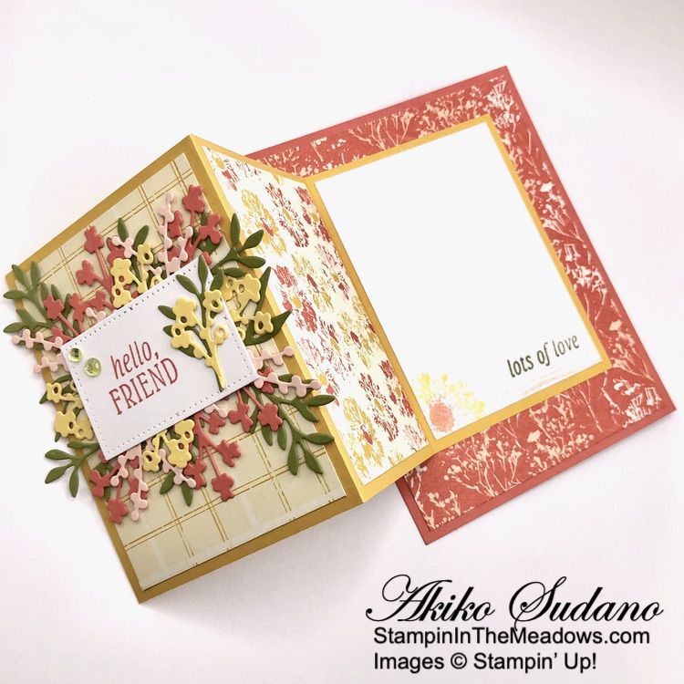 WOW!!! Gorgeous card Akiko 🙂 Love the mix of DSP’s and your beautiful collage on the front. Perfect fun fold too.