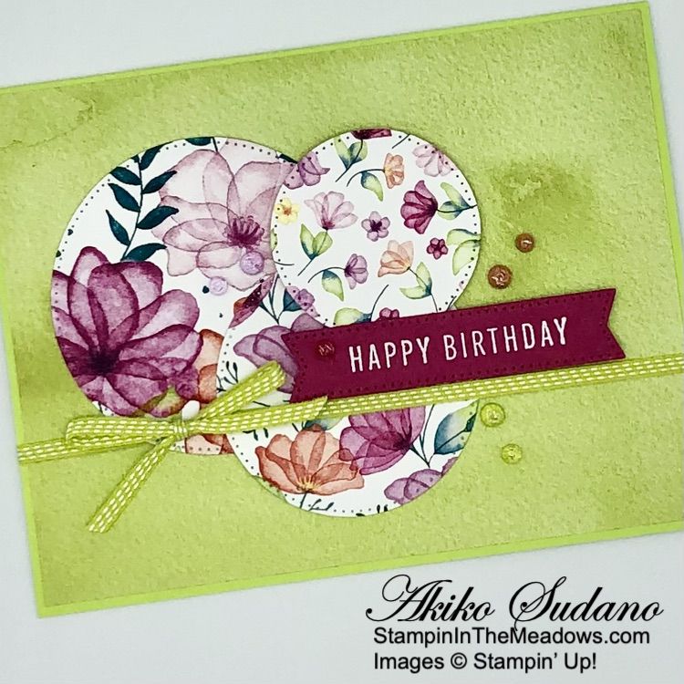 A simple birthday card made with the pretty Stampin’ Up! Translucent Florals bundle and Delightful Floral designer series paper.