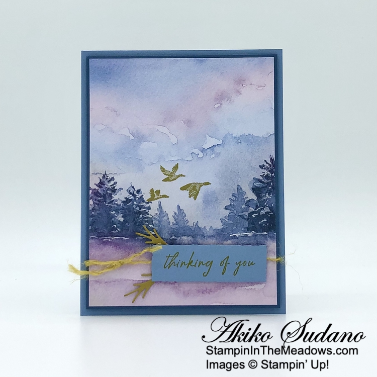 The Thoughtful Journey 6″ x 6″ designer series paper is so beautiful and I love how it looks with the flying ducks from the Stampin’ Up! Feathered Flight stamp set. A quiet, beautiful morning in the woods with a loved one!