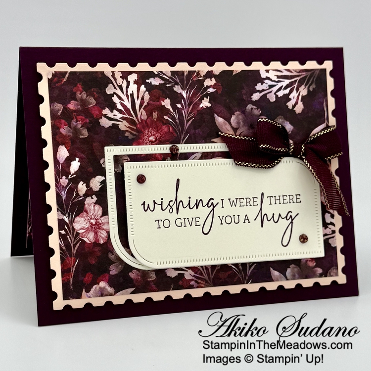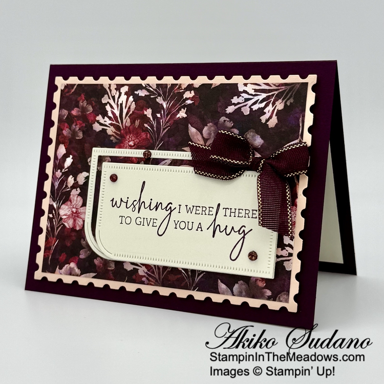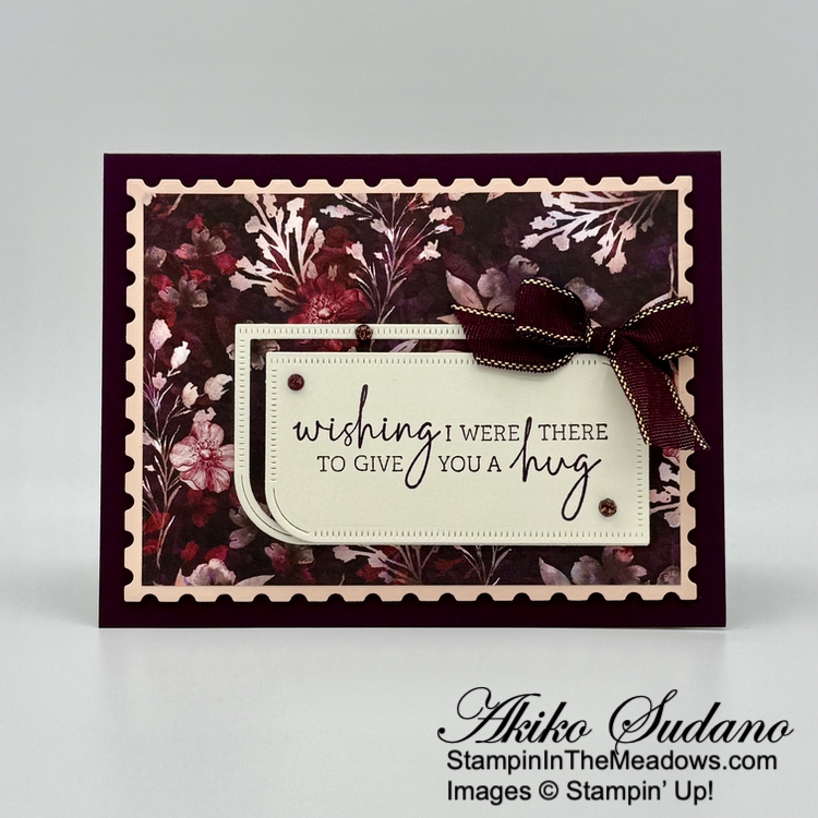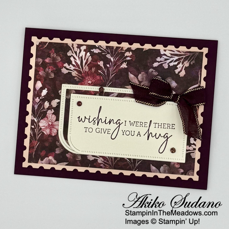 I made a Blackberry Bliss bow and adhered it to the top right and finished with three Blackberry Bliss foil gems.