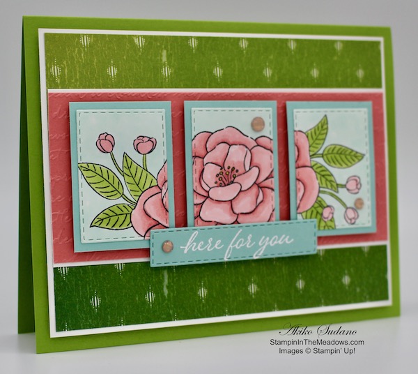 Akiko, what a beautiful card and clever way to create three panels using that gorgeous flower!