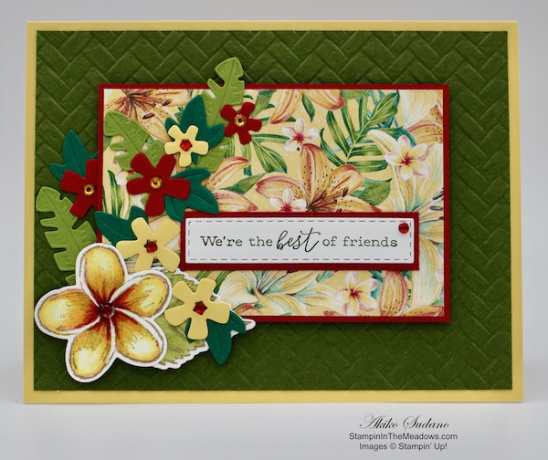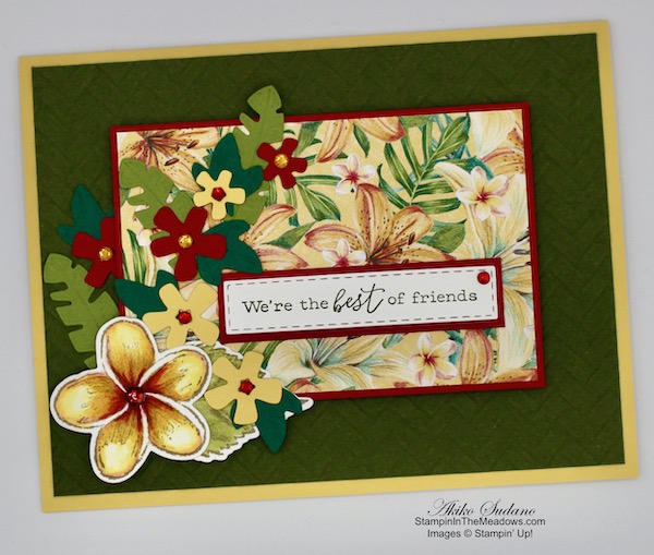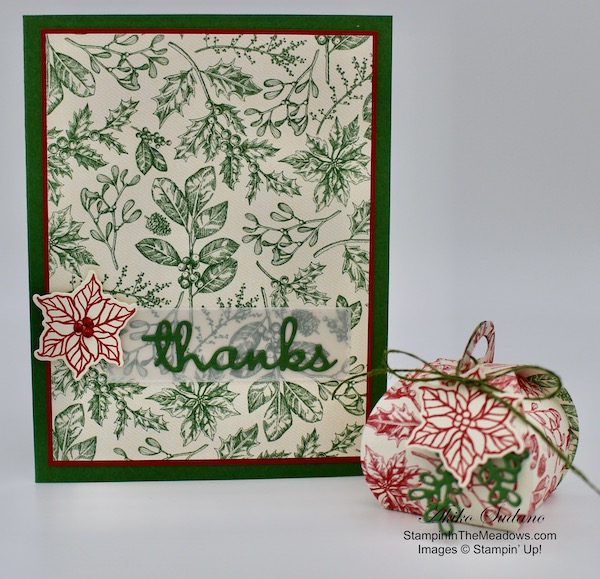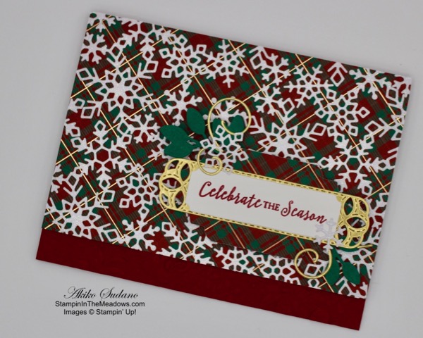 The rich fall colors and the plaid give a different look to the beautiful flowers from the Stampin’ Up! Ornate Style stamp set, that is perfect for this time of year. So if you’ve got this bundle, pull it out and have fun creating a fall card! Oh, and the pretty Plaid Tidings designer series paper is on sale for 15% off!
