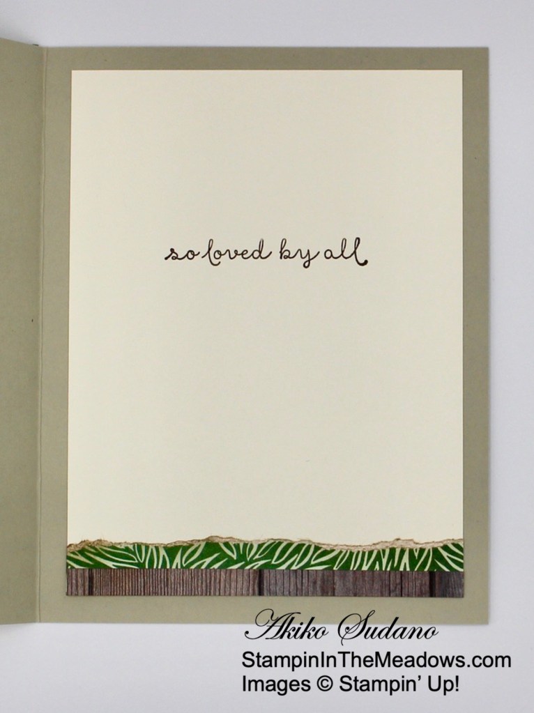 For the inside of the card, I stamped the lighthouse from the Stampin’ Up! High Tide stamp set in Smoky Slate and Real Red on a Basic White panel. I stamped the sand in Crumb Cake. I inked up the water with Bermuda Bay and used a sponge dauber to lighten the ink on the right side. I masked the light house and stamped the water. I used the blending brushes and sponge dauber to color the water just like the card front, fading the color toward the center of the panel. I stamped the grasses in Garden Green and the birds in Memento Tuxedo Black and adhered the panel to the inside of the card.