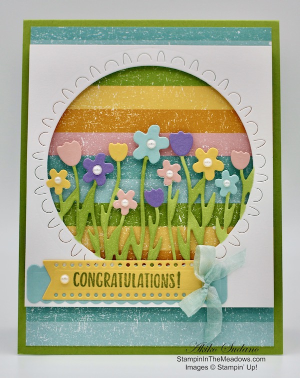 The Stampin’ Up! Sending You Thoughts stamp set is a Sale-A-Bration stamp set that is FREE with a $50 order and it has a great selection of sentiments in a great font. The Sending Flowers dies are part of the new Coordination Product Release. Both of these products are available now while supplies last.