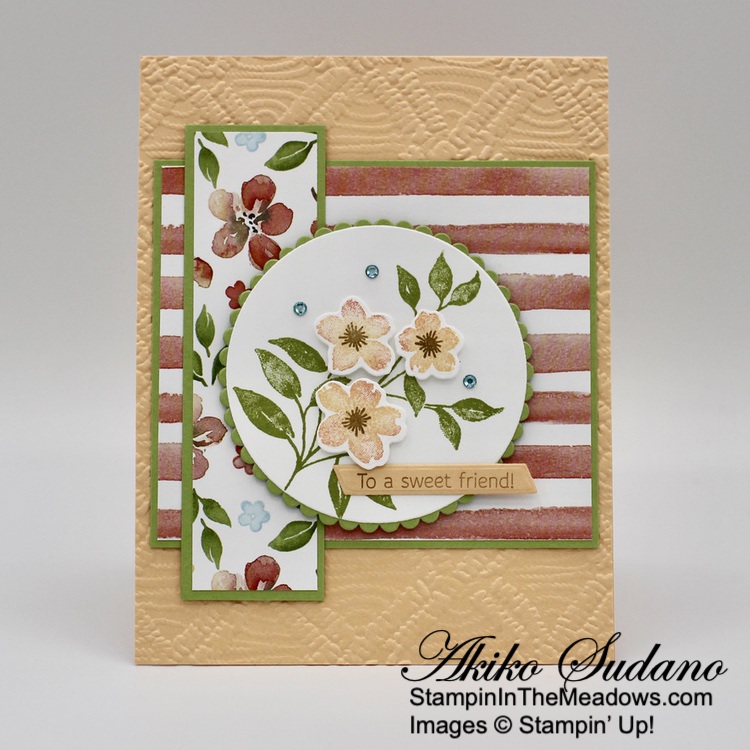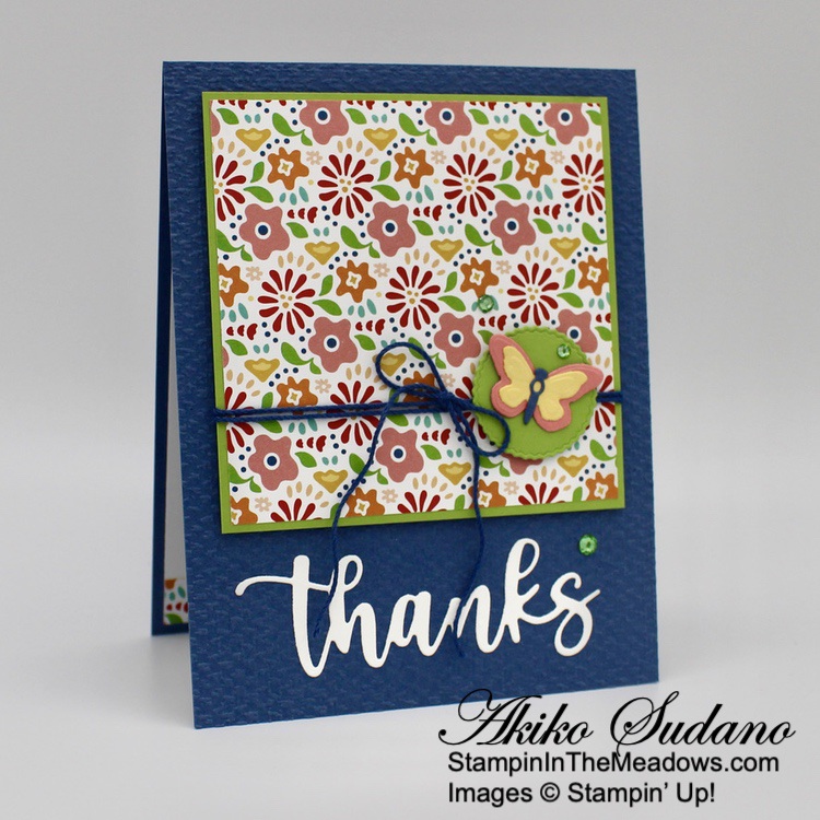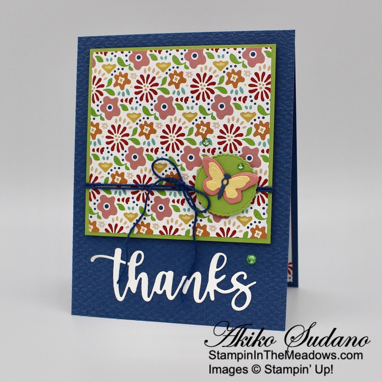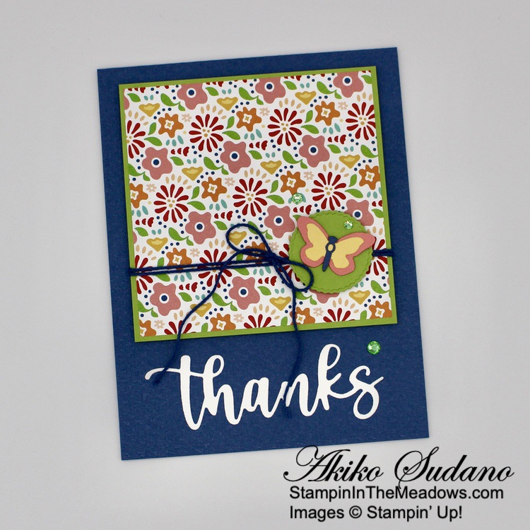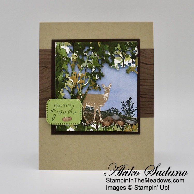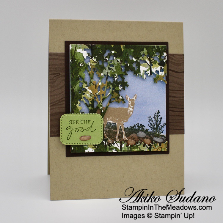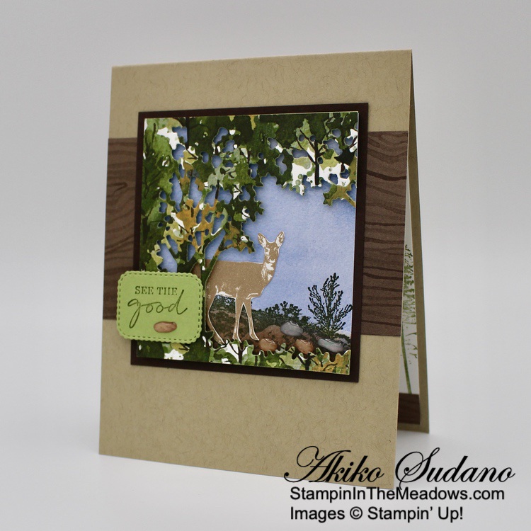 The wooded frame die from the Stampin’ Up! Grassy Grove bundle is so neat! But the other scenic stamps are also pretty and the sentiments are sweet. And it goes beautifully with the Beauty of the Earth DSP! The different prints give your project texture and interest and are perfect for the natural woods theme of the bundle!