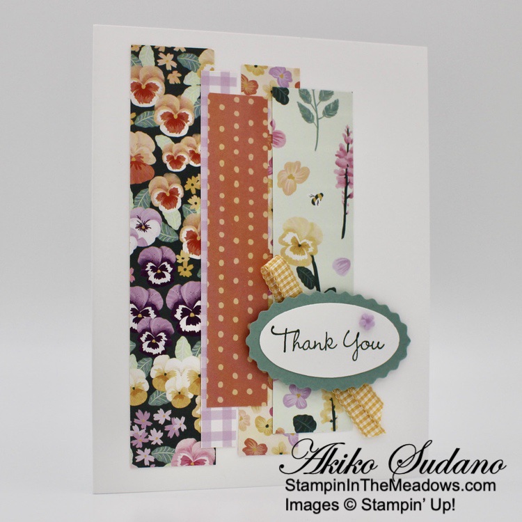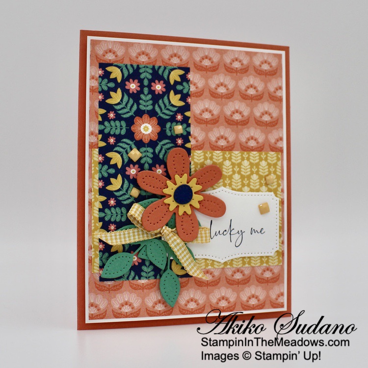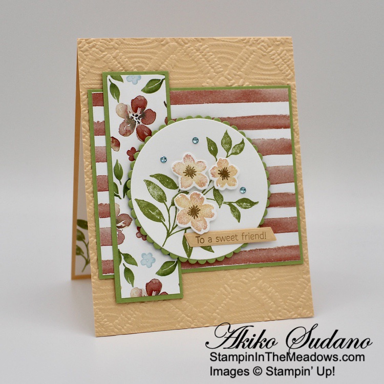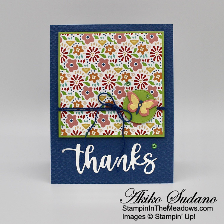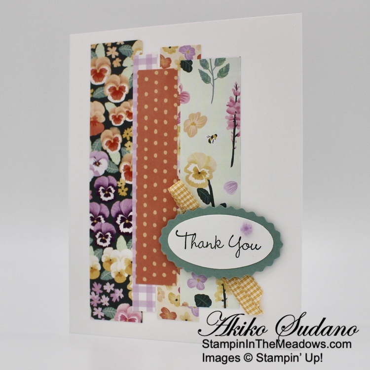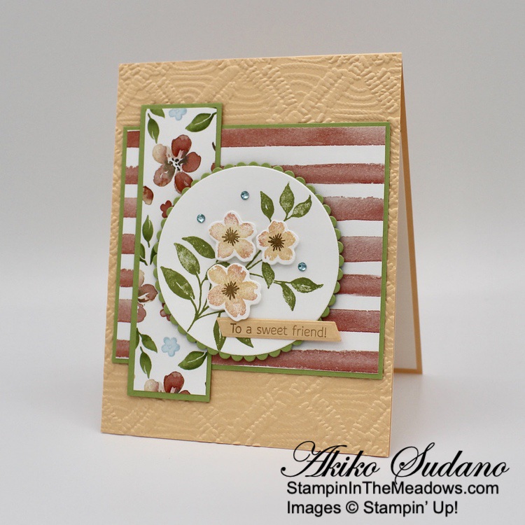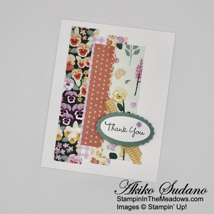 The wooded frame die from the Stampin’ Up! Grassy Grove bundle is so neat! But the other scenic stamps are also pretty and the sentiments are sweet. And it goes beautifully with the Beauty of the Earth DSP! The different prints give your project texture and interest and are perfect for the natural woods theme of the bundle!