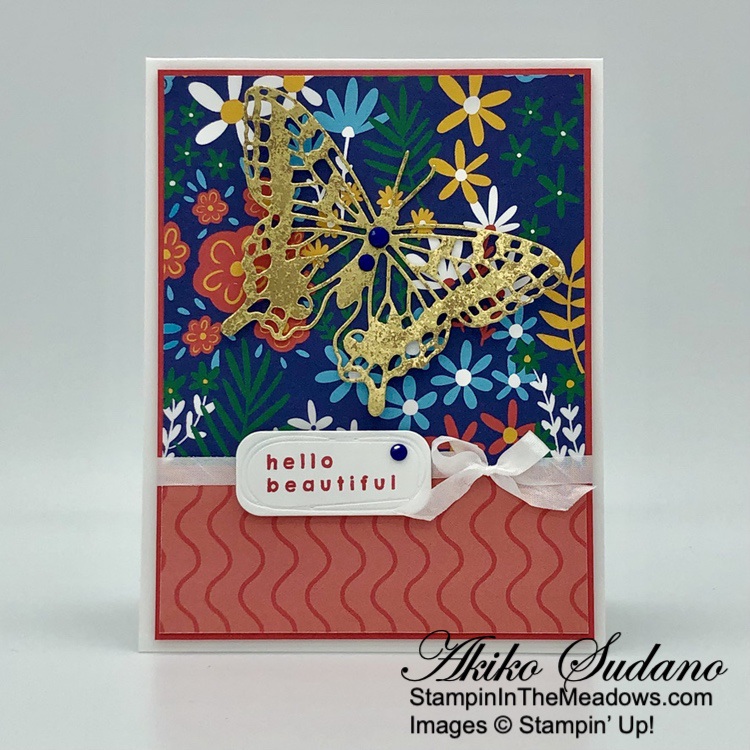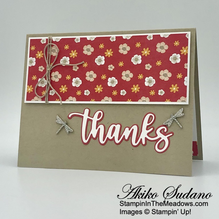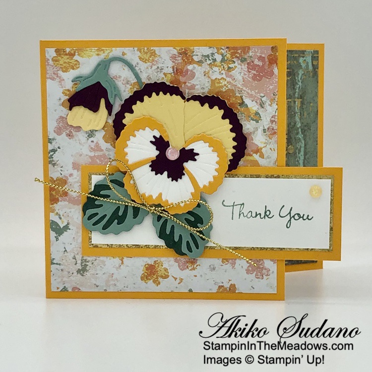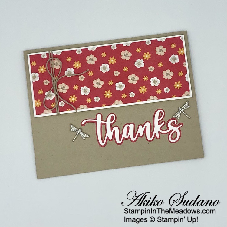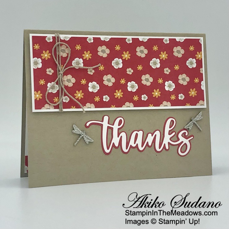 Good Morning! Here is a quick thank you card made with the retiring Stampin’ Up! Amazing Thanks dies and the pretty Tea Boutique 6″ x 6″ designer series paper. You can find the supplies I used at the bottom of my post along with the sizes of cardstock used