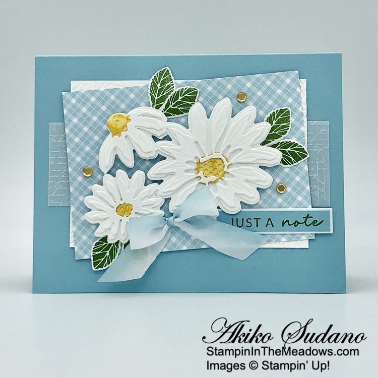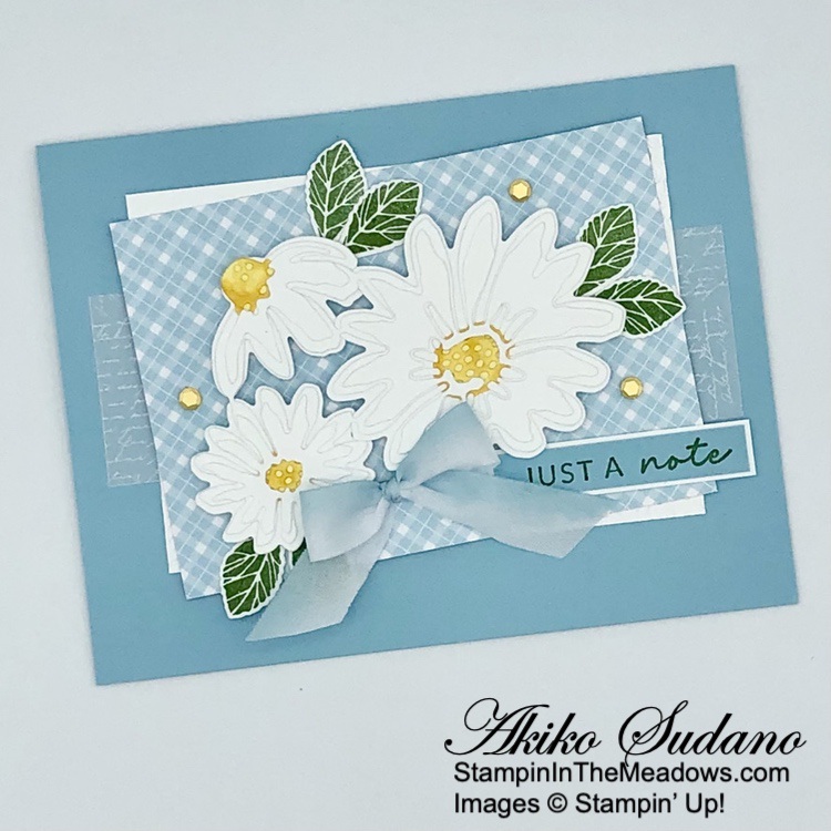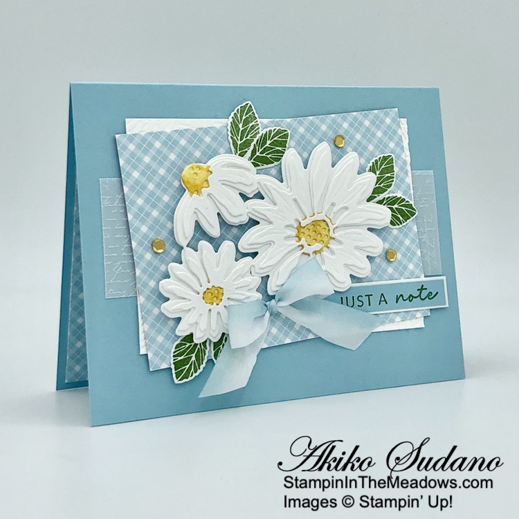 - Azure Afternoon – 4-1/4″ x 11″ card base scored at 5-1/2″, 2-3/4″ x 4-1/8″ (art panel mat)