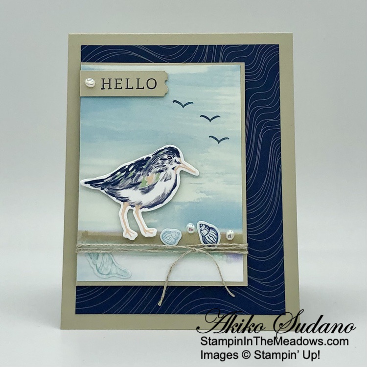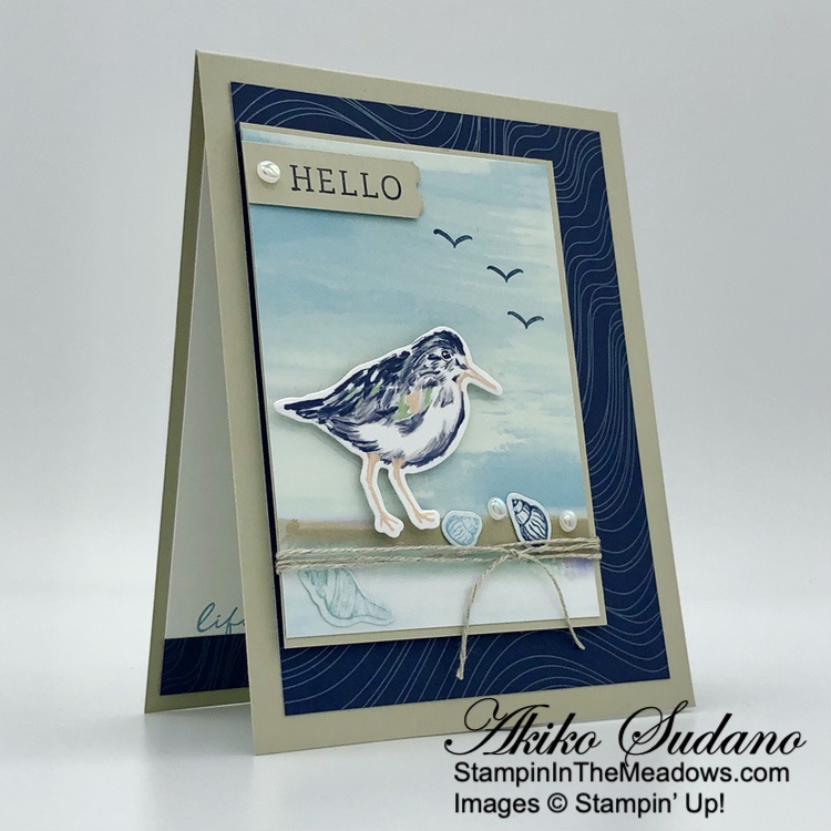 For the inside of the card, I stamped the sentiment from the Stampin’ Up! Places in the Heart stamp set in Pebbled Path ink on a Basic White panel and trimmed the side with a strip of Bright and Beautiful DSP. I adhered the panel to the inside of the card with Stampin’ Seal.