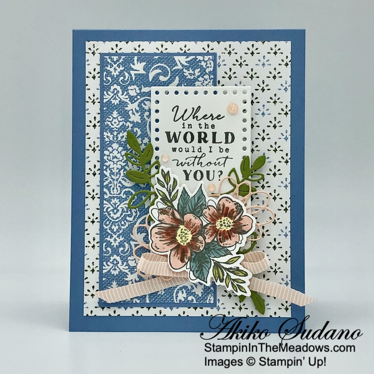The Stampin’ Up! Inspirational Sketches stamp set goes well with the Notes of Nature bundle and the Poetic Expressions designer series paper. The rustic, natural looks of these items compliment each other well. I love it when you can mix and match items from different Product Suites to make pretty cards!