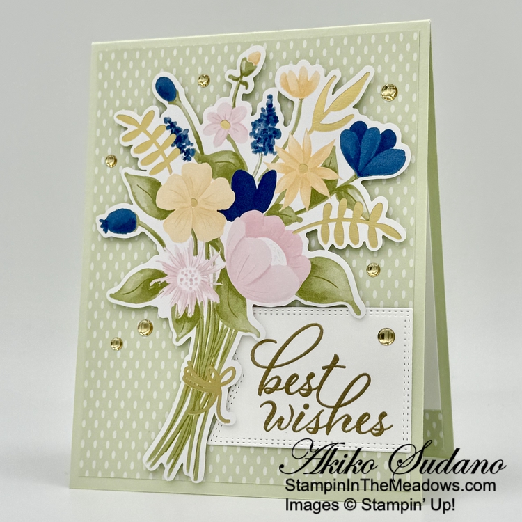 I love the birthday sentiments from the Stampin’ Up! Round We Go stamp set – they are so festive and go with anything. And the Wildflower Birthday designer series paper is just beautiful!