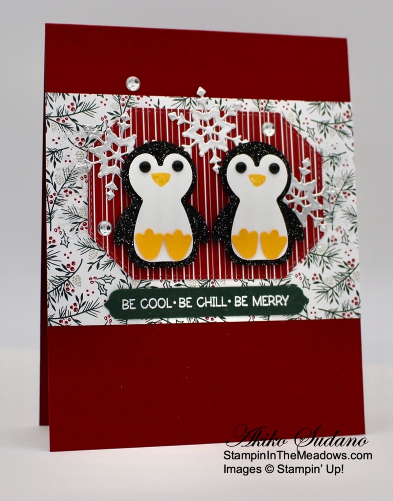 Good Morning! Here’s a late post with a card and some pretty tags made with the Stampin’ Up! A Little Bit Festive specialty designer series paper and the Greetings of the Season bundle.