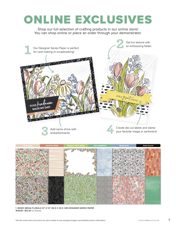 Retiring products for the current September-December 2024 Mini Catalog are now available in the Last Chance Products category in the Online Store.
