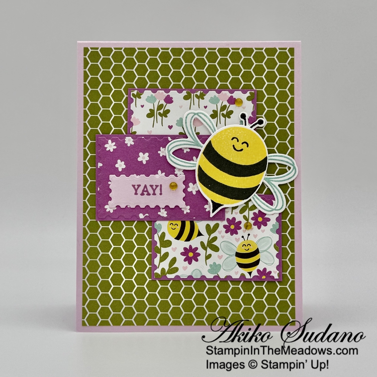 The Stampin’ Up! Brushed with Beauty suite has lots of pretty flowers and leaves – I love the two step stamped flowers! And the word dies in the Words of Beauty bundle are great with three layers! I love that there are so many other sentiments and label dies that fit them perfectly. And the colors in the DSP are so soft and pretty.