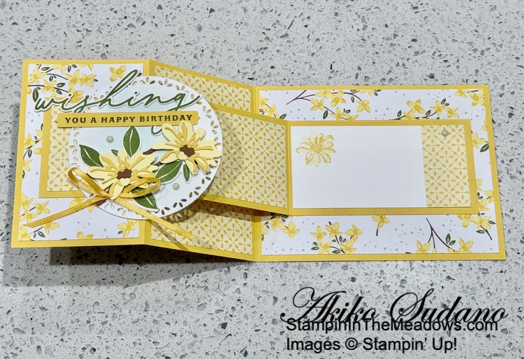 - Perennial Lavender DSP – 3″ x 5-1/4″ (front background), 1″ x 5-1/4″ (inside trim), 3″ x 4-1/4″ (die cut panel)