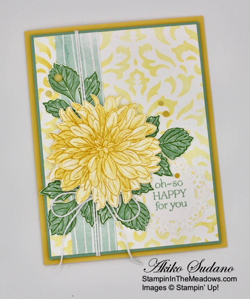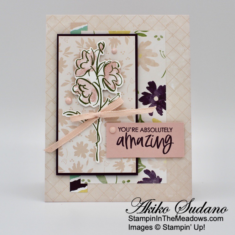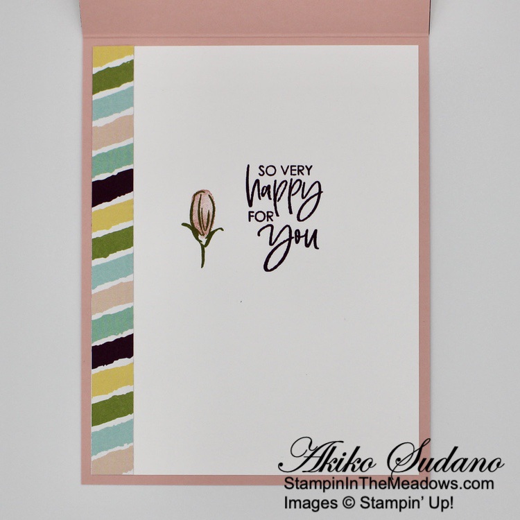 Good Morning! The Stampin’ Up! Good Feelings stamp set has bold, upbeat sentiments that are easily combined with other stamp sets, dies and DSP to easily make a card. For today, I combined it with the beautiful Countryside Corners designer series paper and the flowers from the Lasting Joy stamp set. You can find the products I used at the bottom of my post along with the card stock sizes.