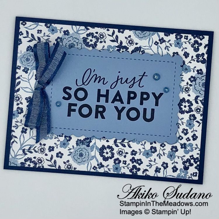 I finished the card front with a Night of Navy bow and Misty Moonlight tinsel gems.