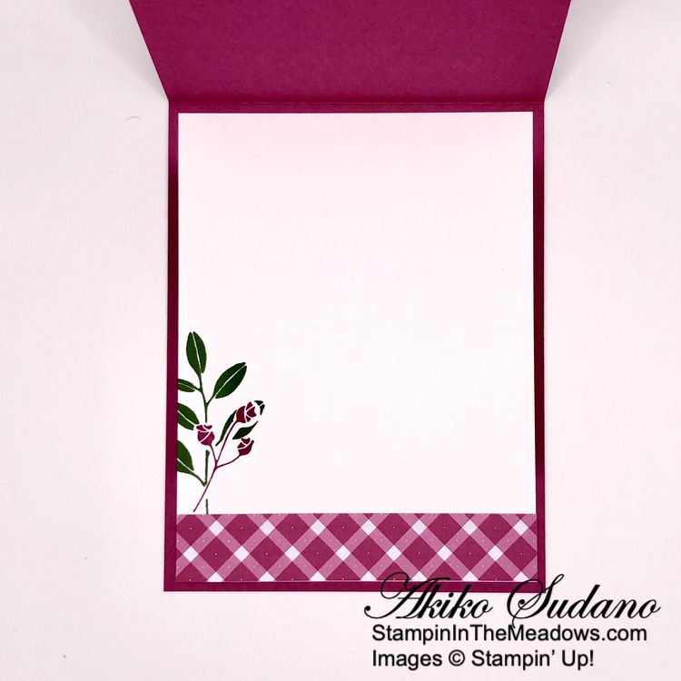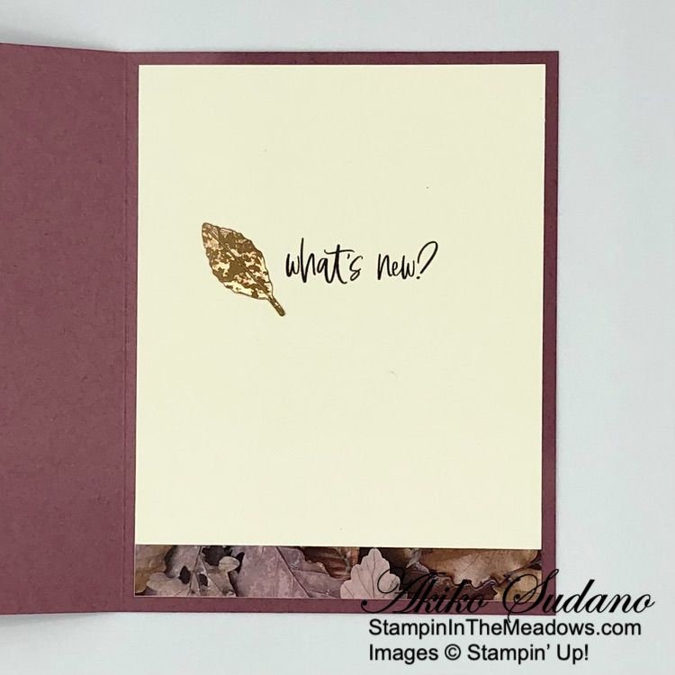 I kept the inside of the card simple, just adhering a strip of A Walk in the Forest DSP to a Basic White panel and adhering the panel with Stampin’ Seal.
