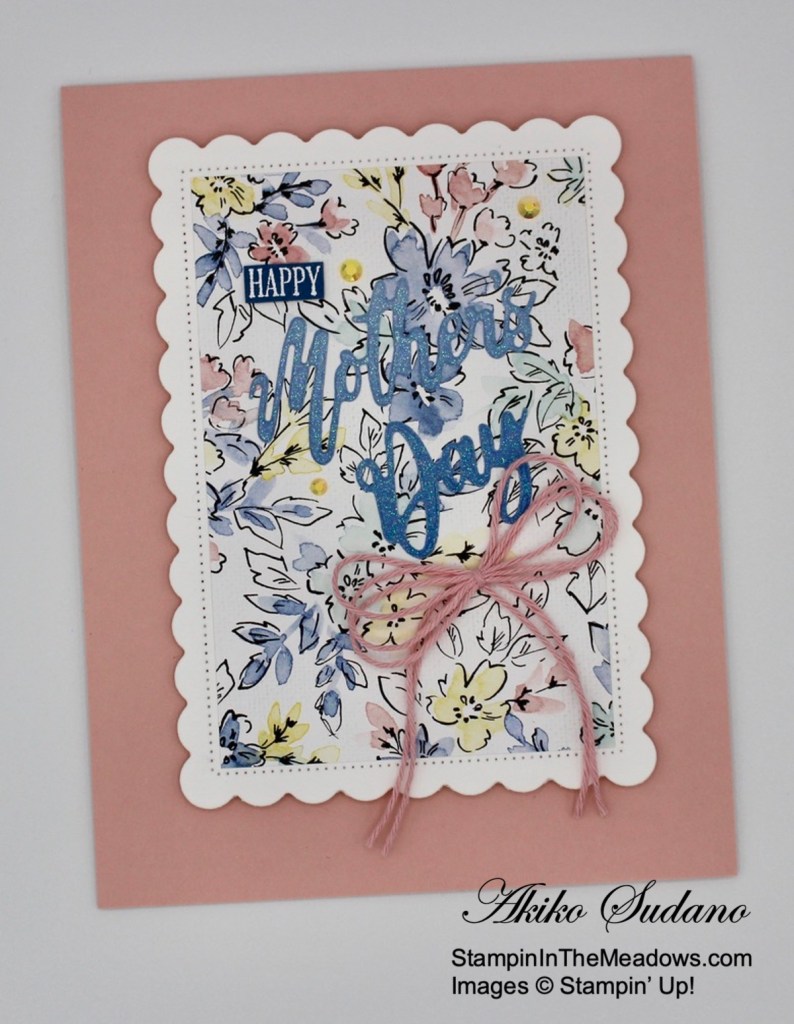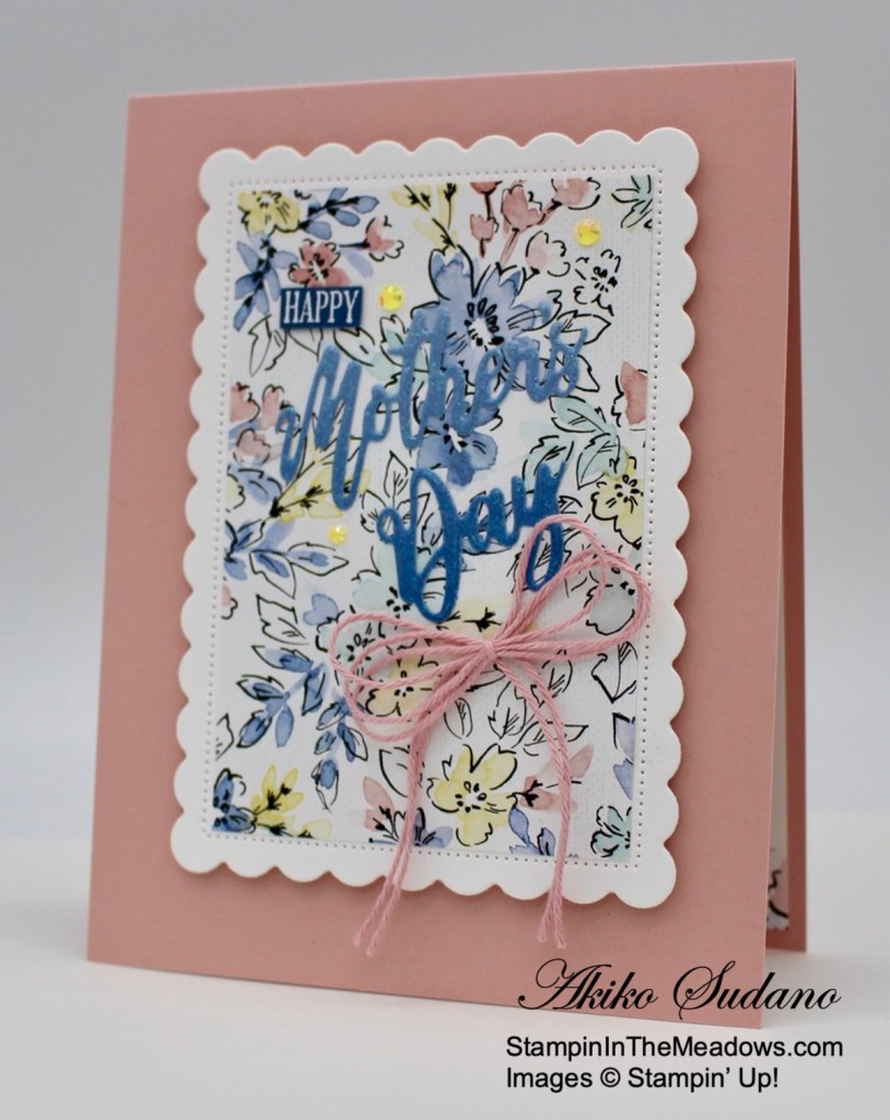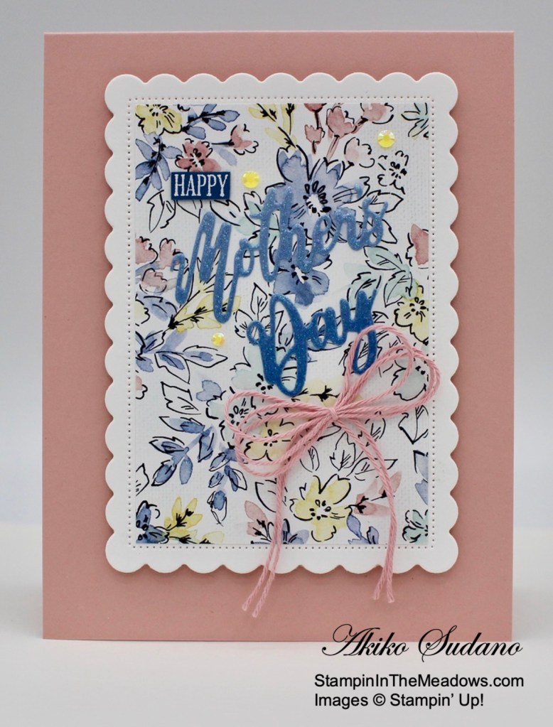 Good morning! Welcome to the April Inkin’ Krew Team Blog Hop! The theme for this month’s hop is “For the Ladies/Girls” so I made a Mother’s Day card with the pretty flowers from the Stampin’ Up! Flowing Flowers cling stamp set and the sentiments from the retiring Timeless Tulips photopolymer stamp set! You can find the supplies I used at the bottom of my post along with the sizes of cardstock used.