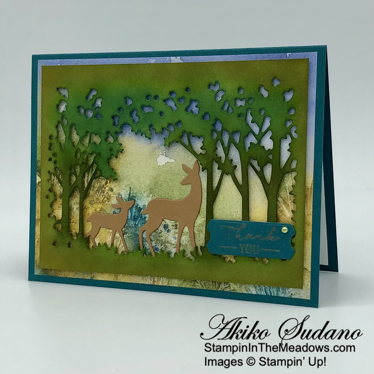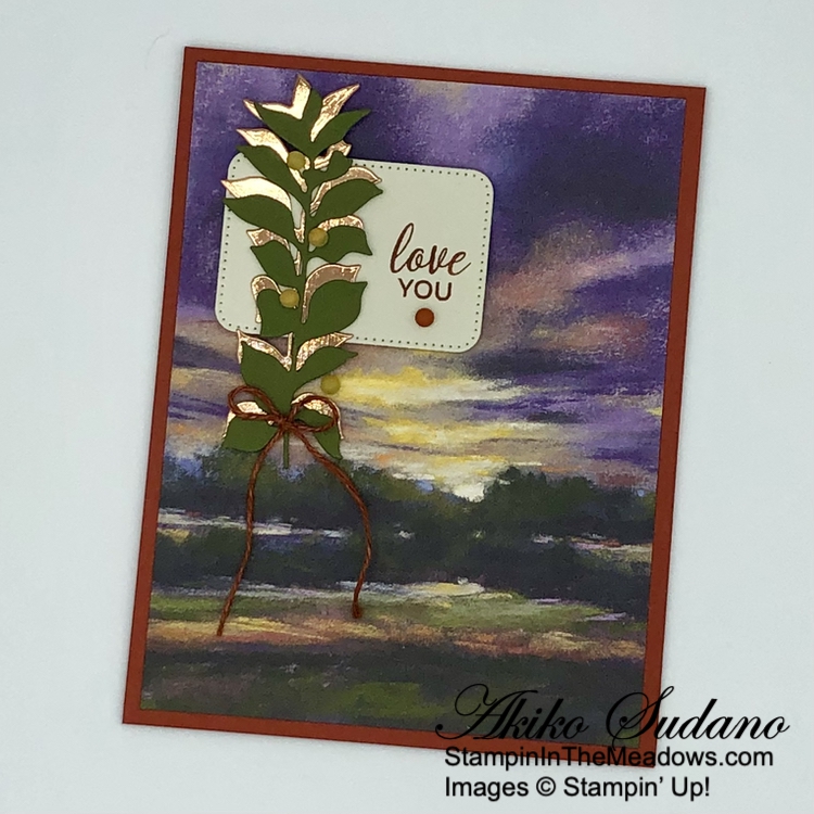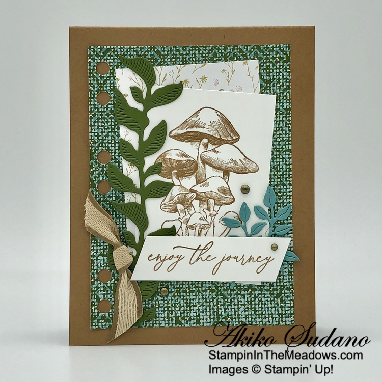 The Stampin’ Up! Choose Happy stamp set has nice sentiments for different occasions and it goes well with theMini Alphabet dies. But the Everyday Arches dies are the real star of this card, transforming a pretty Splendid Autumn DSP image into something special.