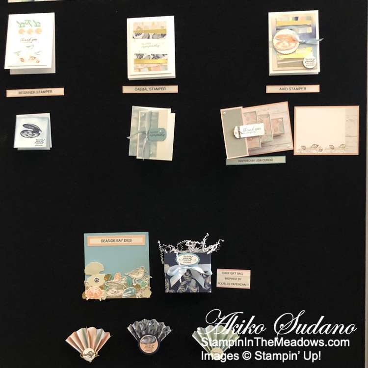 The projects made during the Stampin’ Up! presentations were posted on inspiration boards so we could get a close up look. Here are some of them. My phone photography skills are not the best, but there are so many pretty things to look forward to after the holidays!