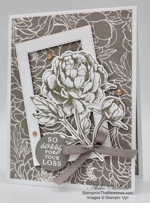 I stamped the outside of a medium Basic White envelop with the same design as the inside panel. A somber, elegant card for a friend going through a tough spot.
