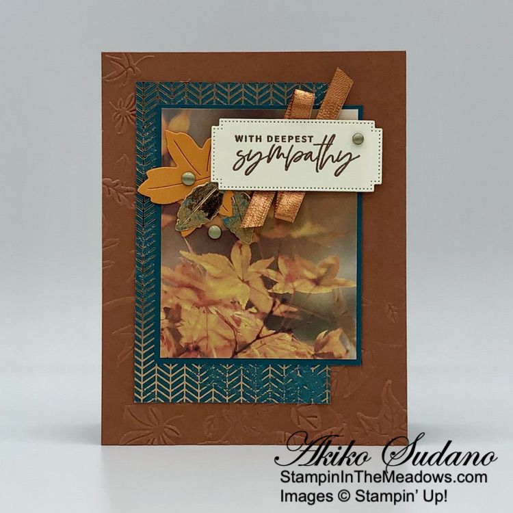 - Evening Evergreen – 5-1/2″ x 8-1/2″ card base scored at 4-1/4″, 2-1/4″ x 4″ (die cut leaf), 2-3/4″ x 4″ (embossed panel mat)