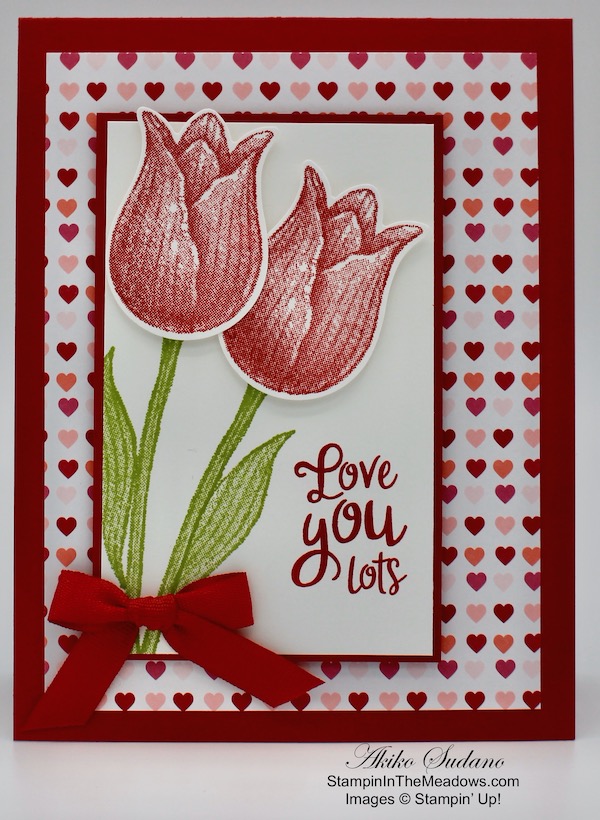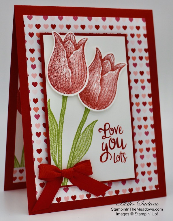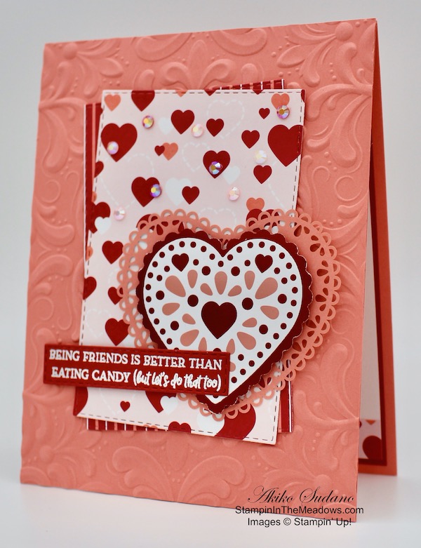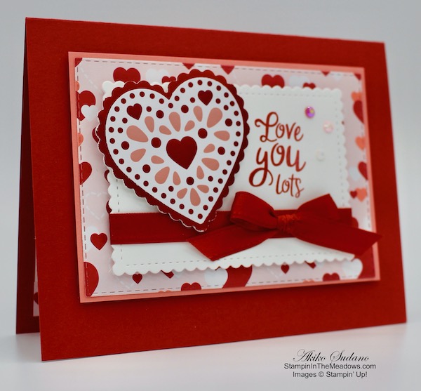 The Stampin’ Up! Heart To Heart stamp set has pretty sentiments and images for traditional Valentines – hearts and flowers. The beautiful new Love You Always specialty designer series paper and matching foil sheets are also perfect for fancy Valentines, but they are also great for Weddings, Anniversaries and even extra special Birthdays.