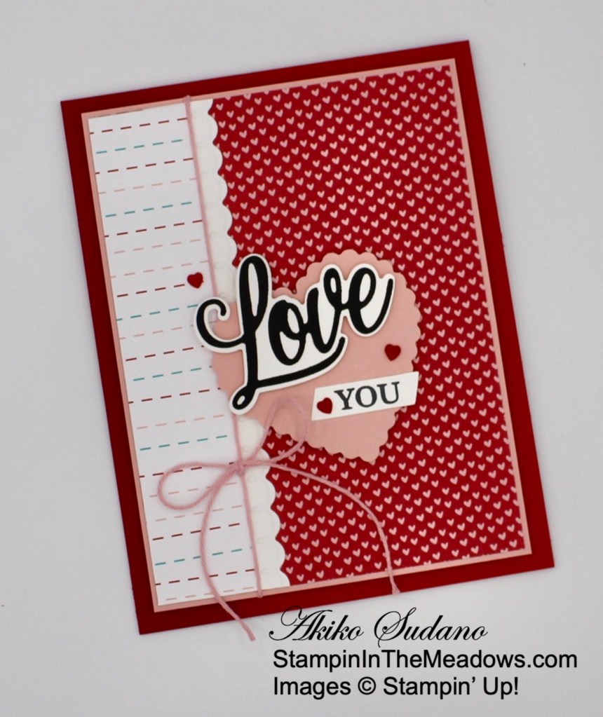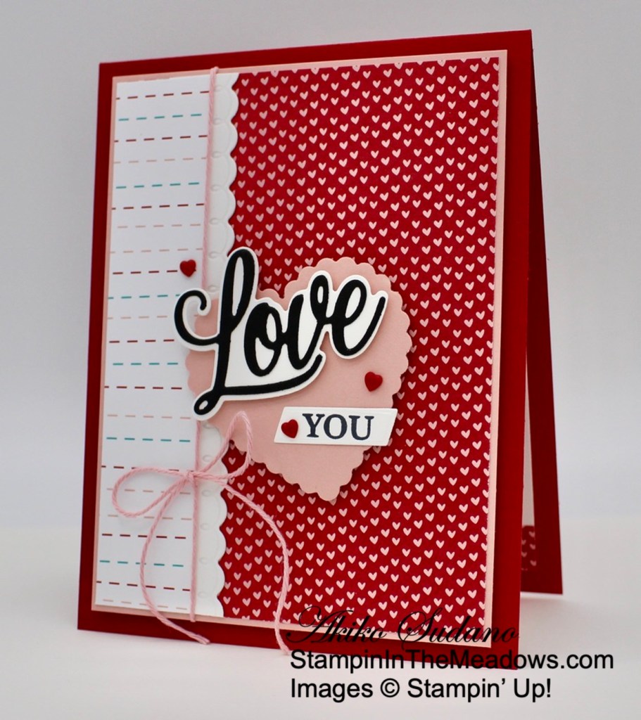 - Love You Always Foil – 3″ x 4-1/4″ (scalloped rectangle die cut), 1/2″ x 3-1/2″ (label), 2-1/2″ x 2-1/2″ (scalloped heart punch and small heart die cut)